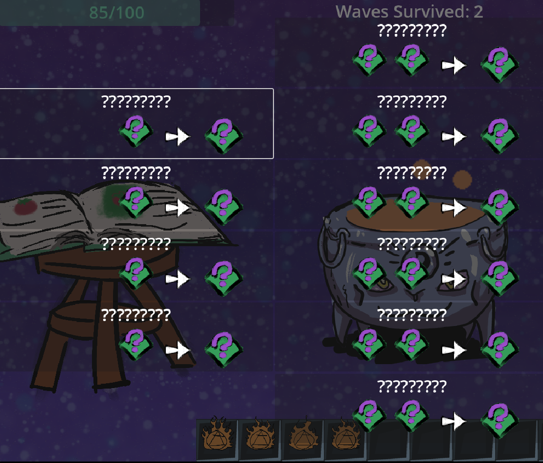 So your new book will also save and reload your known recipes and your high score is stored :> (Locally in browser memory or as kobold_concoctions.save on downloaded version.)
