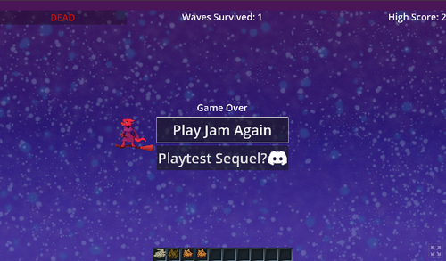 As you can imagine I absolutely wanted to ship it for the jam too but completely forgot about it until last day and then realized I did not account for resetting a lot of game items (player stats, score, wave number etc) so "restarting" was just endlessly free Continue.